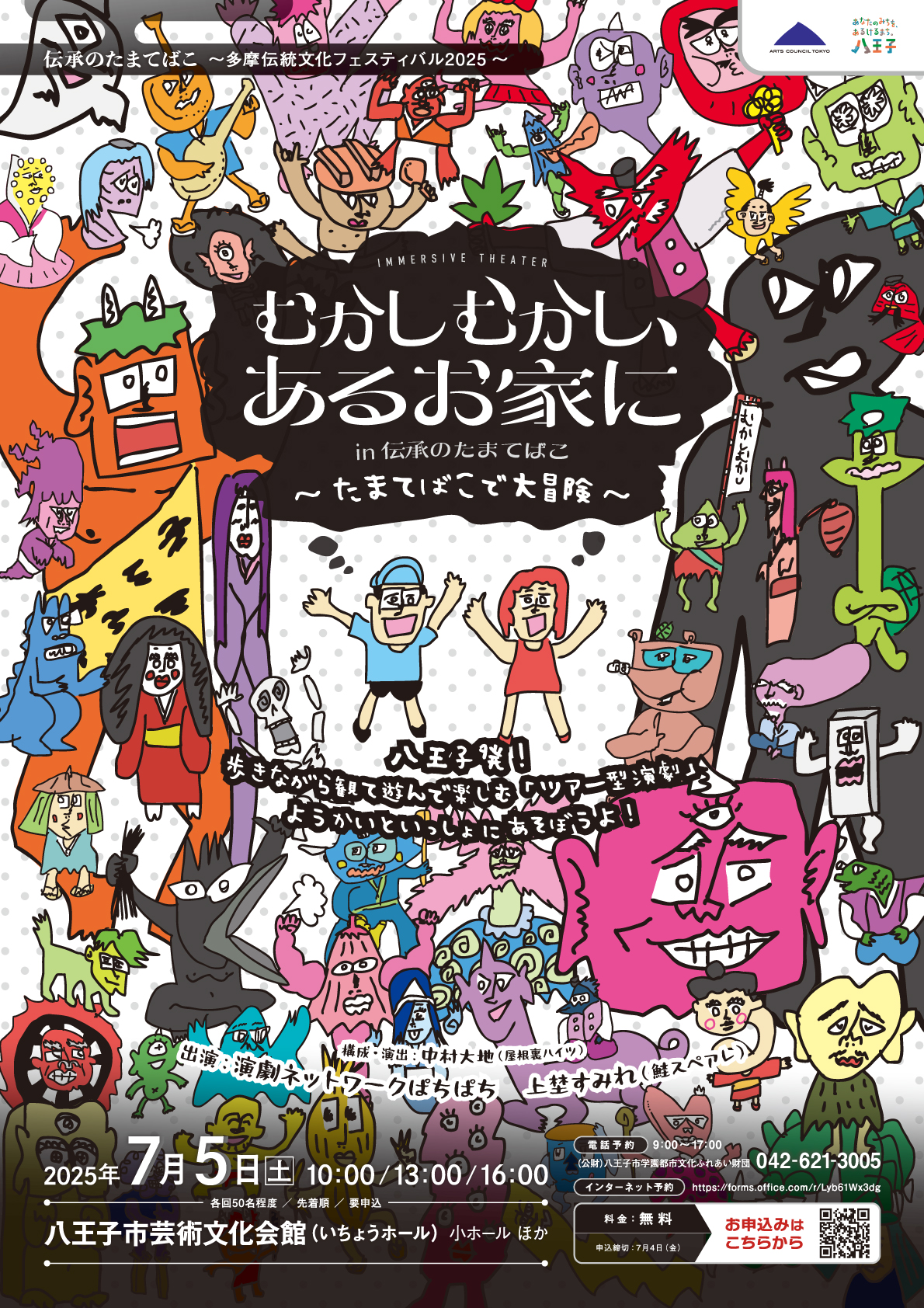 リニューアルした八王子いちょうホールで、妖怪と遊ぼう! むかしむかし、そのまたむかし… 妖怪も、動物も、人間も、一緒に楽しく踊ってた。 見るだけではなく、歩いて遊んで楽しむ親子向けの参加型演劇です。 …