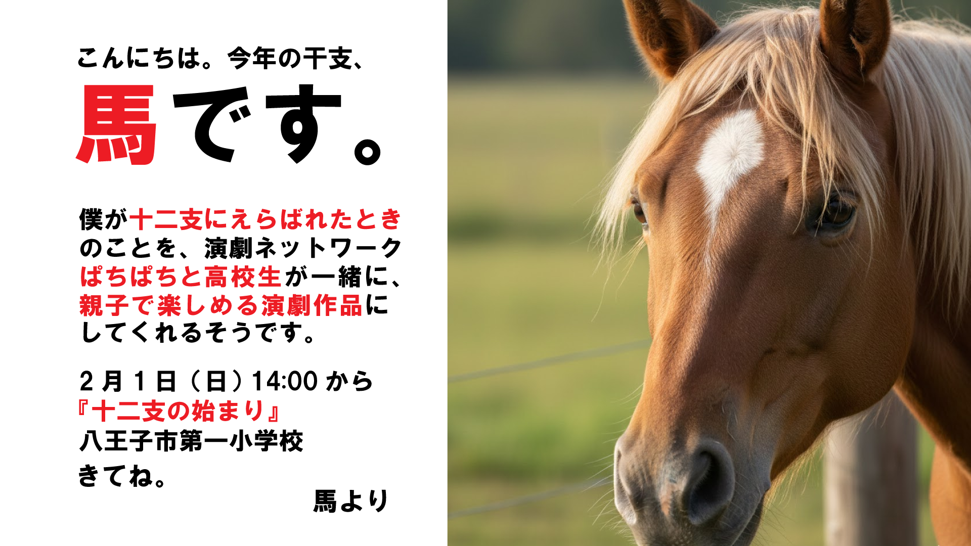 プロデューサー メッセージ 今回の上演では、「十二支の始まり」を題材とします。十二支とは、紀元前の中国で生まれた考えで、もともとは暦や時間を表すために使われ始めたものですが、現代日本では生まれ年を表現…