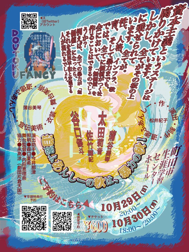 自分の脚本・演出・主宰の劇団「道徳ふあんしー」で、公演をしてます。
